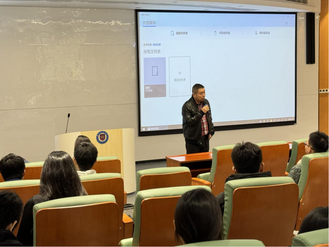 该园物流中心经理张总给同学们带来了园区智慧化、全程数字可视化管理的精彩讲座。