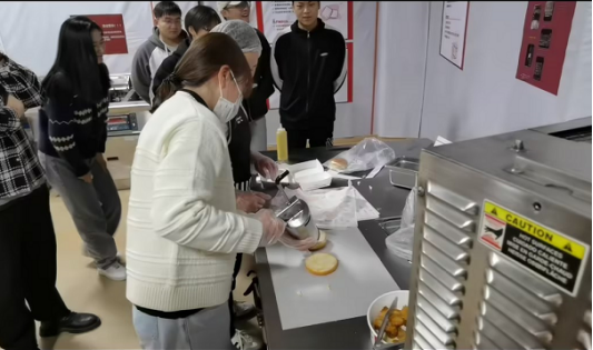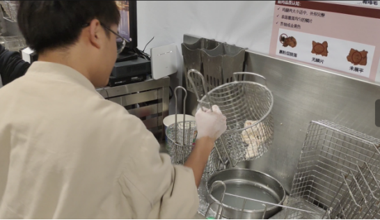 实习第三站,组织同学们进入百胜餐饮最具代表性的业务部门——肯德基,在其哈乐城门店培训教室完成大厅、前台、总配、厨房四个工作站的学习和模拟操作演练。