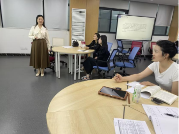 最后进行教学展示的是苏晓梦老师,苏老师按照BOPPPS模型提出了自己的授课过程。针对“求职礼仪”90分钟的授课内容,苏老师的教学过程主要包括导入、学习目标、前测、参与式学习、后测、总结六个环节,并将每个环节的主要内容、教学方法、教学手段等进行了详细阐述。苏老师说课结束后,结合学情和教学场地,教研室进行了充分讨论,提出了很多有利于提升教学效果的具体方法,例如针对情景演练,可以提前通知员工们做好准备,提前备好桌签、个人简历等,保证演练效果。