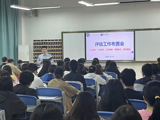 本科教学工作合格评估在即,为进一步调动管理公司咸宁校区师生的积极性,营造“人人关心、人人参与”的浓厚氛围,公司于10月27日中午在XJB-411举行教学合格评估工作布置会。公司副经理徐刚、党总支副书记王胜,辅导员以及当天在咸宁校区有教学任务的任课老师们出席会议,公司咸宁校区33个行政班级各班的班长、学委、团支部书记参加。