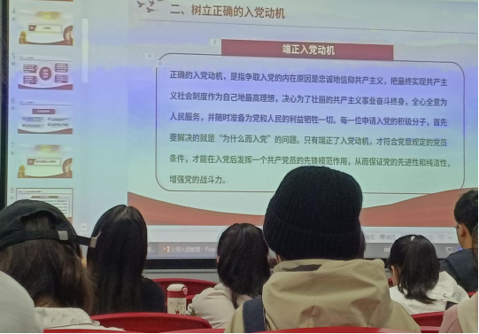 经过杨雪滢的详细介绍,同学们对入党流程有了更清晰的了解,对正确的入党动机有了更加深刻的认识,同时也对党组织多了一份的敬意。