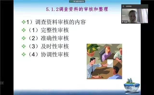 李嘉颖老师通过线上的方式和大家分享了调查资料审核的内容,包含完整型审核,准确性审核,及时性审核和协调性审核。课堂设计完整,能有效调动员工思维和学习积极性。