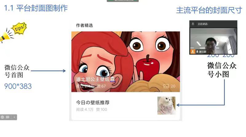 谢义超老师通过线上参会的形式分享了平台封面制作的内容,并利用创客贴在线工具为大家演示了微信公众号首图的制作流程,他课程内容设计完整,经验丰富,通过边演示边讲解的方式激发大家的学习兴趣。
