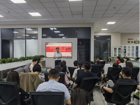 2023年7月12日,管理公司召开试卷、毕业论文问题专题反馈会。经理严良、副经理徐刚、孟静再次强调关于试卷、毕业论文的要求及规范。
