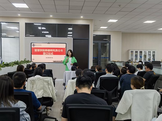 为进一步推进落实管理公司的师德师风建设工作,5月17日管理公司学工队友针对师德师风责任板块,启动了全院教师师德师风承诺书的签订仪式。管理公司党总支书记王珉主持,管院全体教师参会。