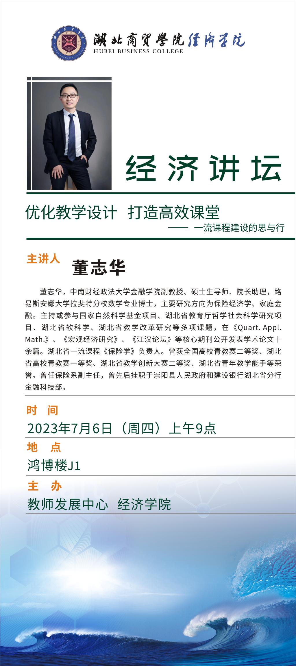 经济讲坛|名师有约|优化教学设计 打造高效课堂--一流课程建设的思与行