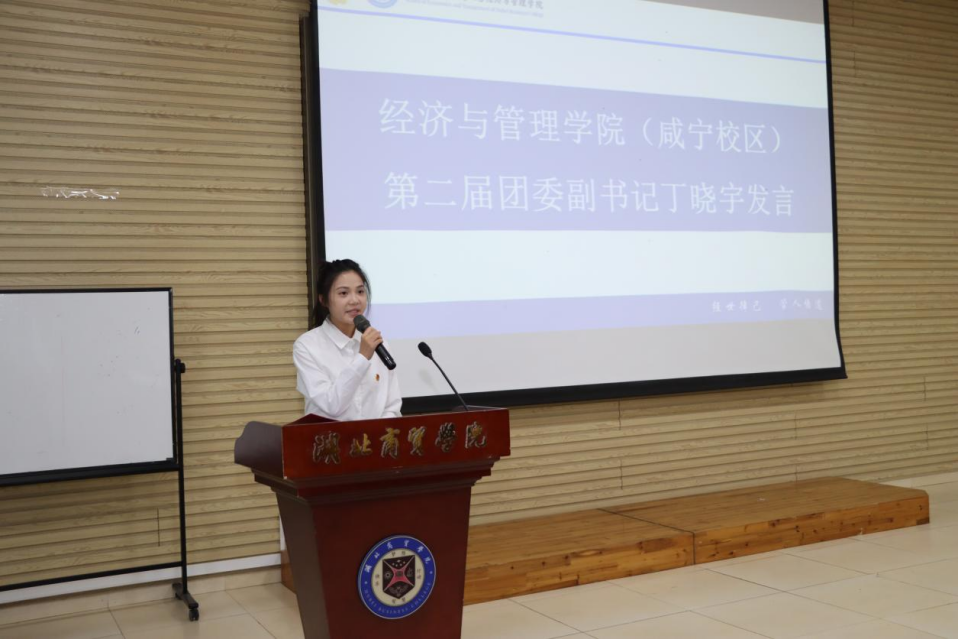在发言环节,第二届团委员工会副书记丁晓宇代表新一届团委员工会全体成员发言,她分享了对团委员工会工作的认识和展望,表达了对未来工作的坚定信心。希望新成员们可以怀揣梦想,永葆初心,与广大同学一起乘风而起,所向披靡,积极开展各类校园文化活动,丰富同学们的课余生活。
