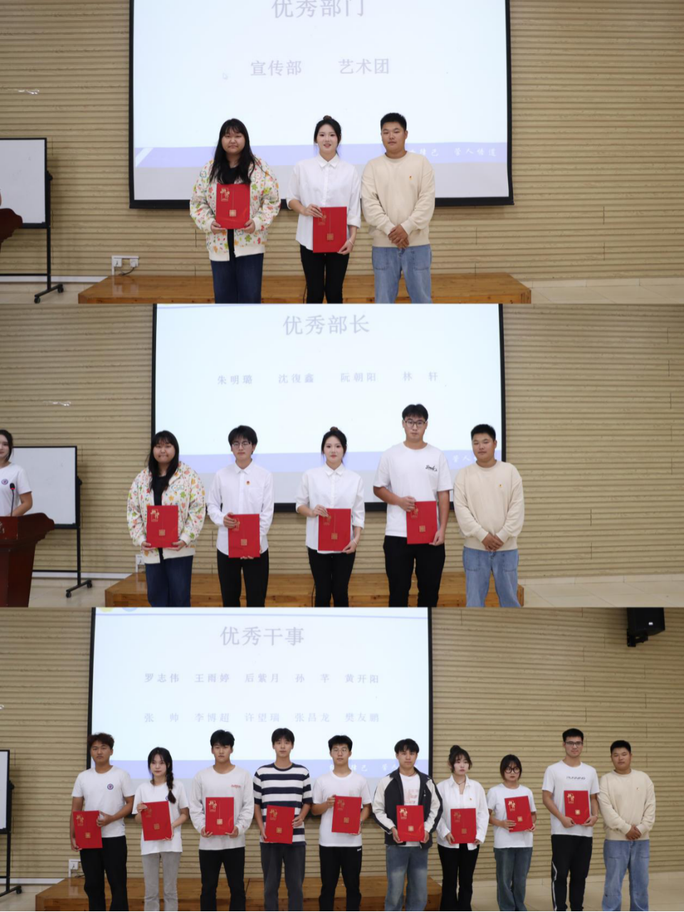 紧接着,大会进行2023-2024学年秋季学期总结表彰,由王开涛老师为第一届团委员工会各优秀部门和优秀个人颁发聘书。