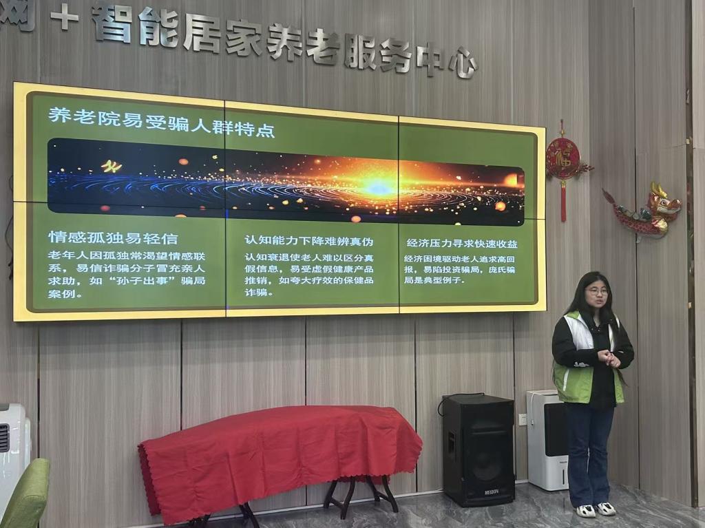 为增强社区老年居民防范金融诈骗的意识和能力,守护好长辈们的“养老钱”,12月15日,tyc41183太阳成“求实”志愿者服务队前往舒养天伦居家养老服务中心,开展了一场主题为“反诈宣传暖银发,青春守护伴安康”的主题宣讲服务行动。青年志愿者们用专业知识与热情服务,为社区筑起一道温暖的“防骗墙”,助力营造更安全、和谐的邻里环境。