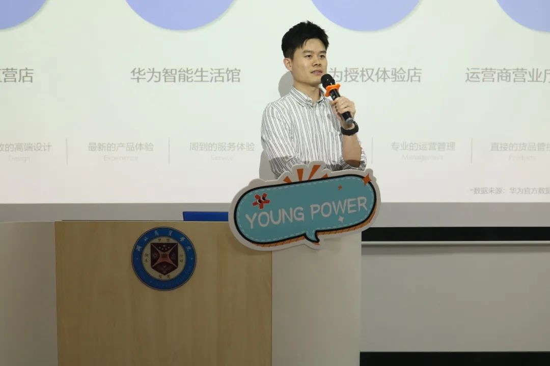 宣讲会上,慧通HRBP管理部招聘专家程韬上台从华为平台、终端业务、系列品牌、公司优势四个方面向同学们做了细致介绍。