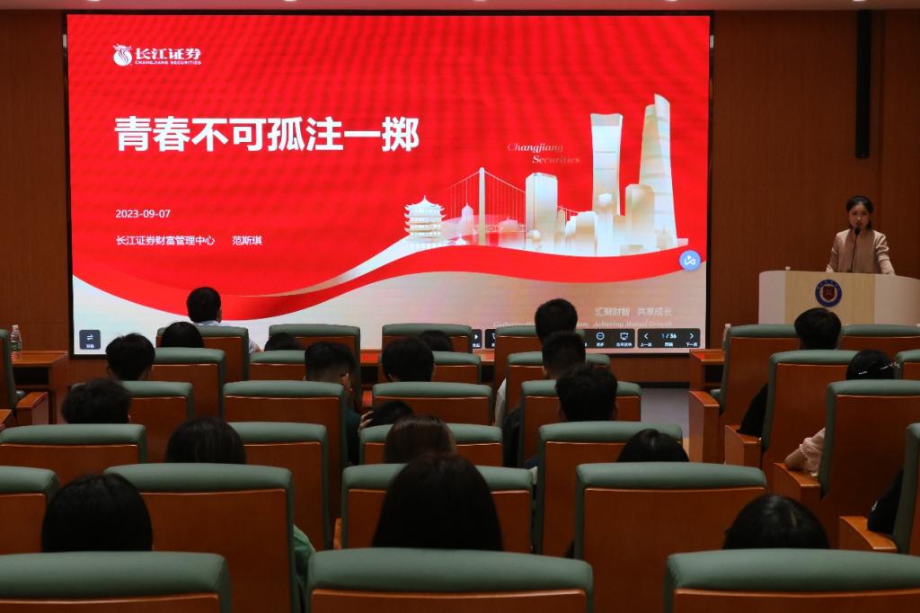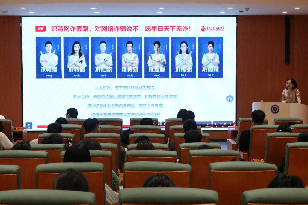 长江证券投资者教育基地讲师范斯琪结合热播电影《孤注一掷》生动形象地讲了电信诈骗的常见手段,提醒同学们在网上购物、聊天、交友等活动中,要提高甄别诈骗信息的能力,保护个人财产安全。