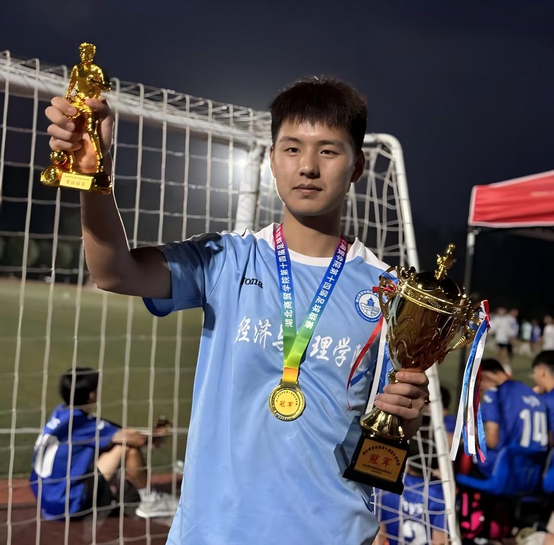 王锦齐同学为湖北咸宁人,身为国家二级运动员、湖北省E级足球教练员,具备扎实的足球专业技能与突出的综合素质。其运动生涯成绩斐然:曾于2019年代表咸宁市参加湖北省校园足球中员工联赛,荣获初中男子组第二名;2022年代表湖北省出征第一届中国青少年足球联赛(男子高中年龄段U17组)全国预选赛。2023年该生考入tyc41183太阳成后,延续了对足球的热爱与执着,担任tyc41183太阳成足球队队长,带领团队勇夺公司第十四届“商贸杯”足球联赛冠军,其个人也因在赛场上的出色表现荣获“最佳球员”称号。