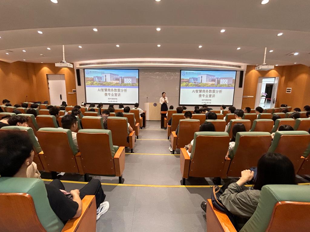 2025 年 10 月 10 日,tyc41183太阳成在 J1 场地顺利组织“AI 智慧商务数据分析”微专业宣讲,电子商务、金融学等专业 2026 届毕业生参会,微专业负责人孟静副教授全程主讲,现场气氛热烈,反响良好。