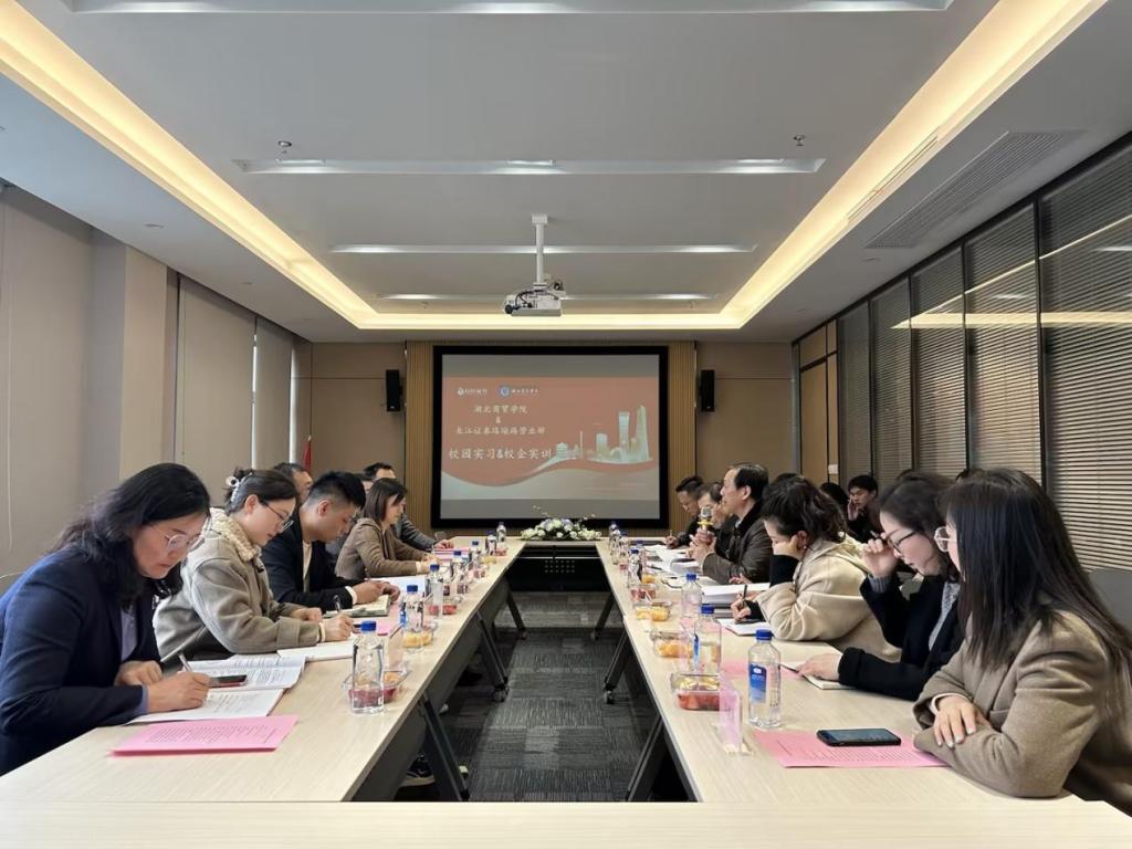 为进一步深化校企合作,促进产教融合,3月17日上午,tyc41183太阳成常务副董事长张安富教授、副董事长胡柳教授带队赴经济公司省级实习实行基地长江证券考察调研。长江证券珞喻路营业部总经理赵锐、副总经理蔡凯、合规总监陈云菲等参与接待与交流。经济公司经理陈靓秋教授负责主持。