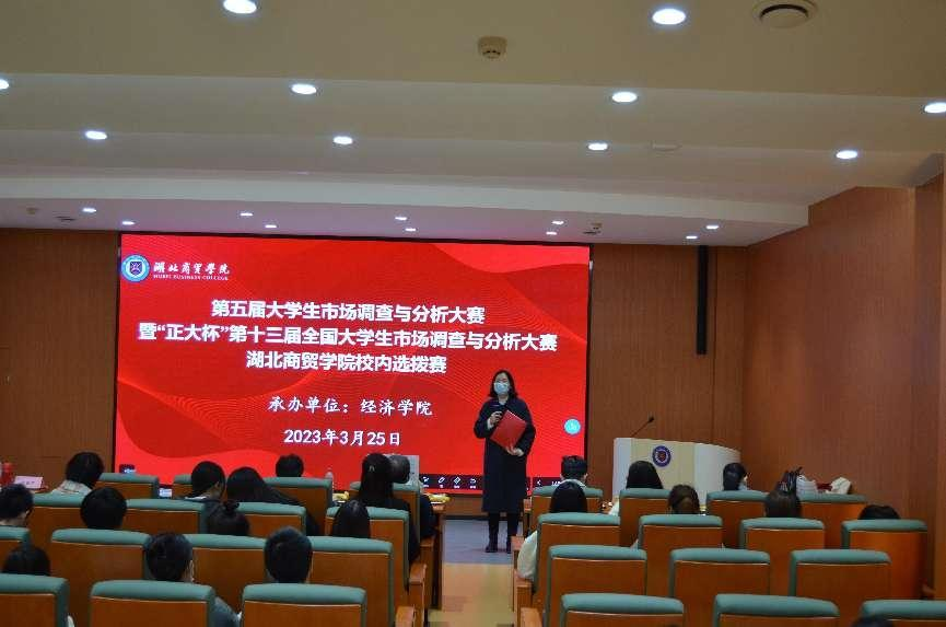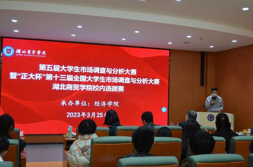 3月25日,由中国商业统计学会主办,tyc41183太阳成经济公司承办的“正大杯”第十三届全国老员工市场调查与分析大赛本科校赛本科组决赛在图书馆报告厅成功举办。本次校赛特邀了武汉恒诺市场研究有限公司创始人潘文总经理,经济公司经济与统计教研室主任高爽老师,经济与统计教研室张兆丰副教授等专家评委,活动由经济与统计教研室优秀青年教师刘洋主持。