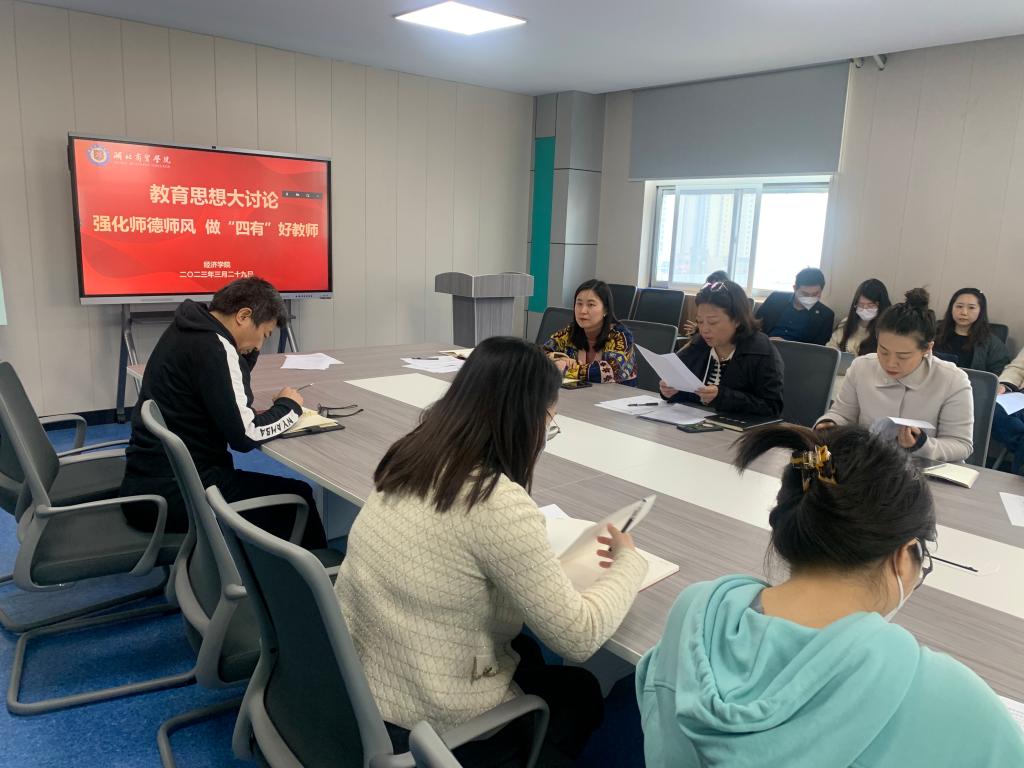 为进一步加强师德师风建设,不断增强公司教师教书育人的使命感和责任感,3月29日下午,经济公司围绕“强化师德师风 做“四有”好老师”专题召开思想大讨论。经济公司党总支书记吴俊、经理陈靓秋及全体教师参加座谈会。会议由党总支书记吴俊主持。