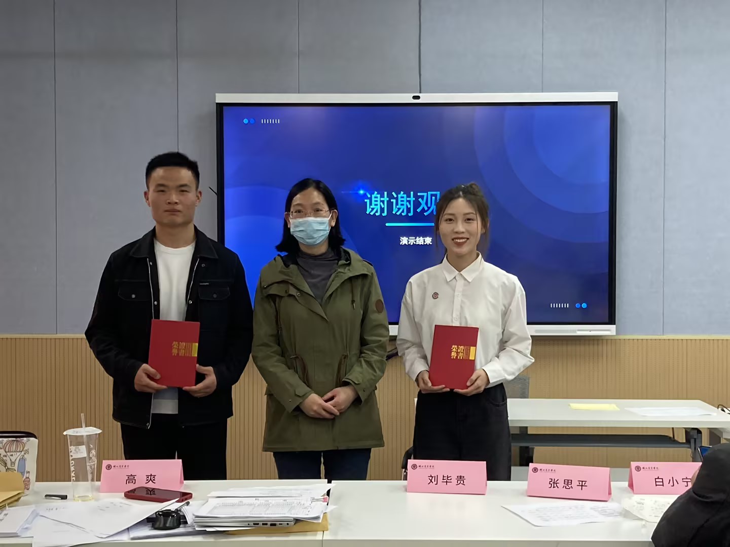 本次比赛共有5支队伍进入答辩展示环节。大赛历时2个小时,最终经过专家评审,获得一等奖作品分别为雷师于小组的《湖北省年轻消费者对现代食品速食类偏爱度调查-以咸宁市为例》、曹瑾怡小组的《后疫情时代老员工心理变化及行为趋势的调查研究》。