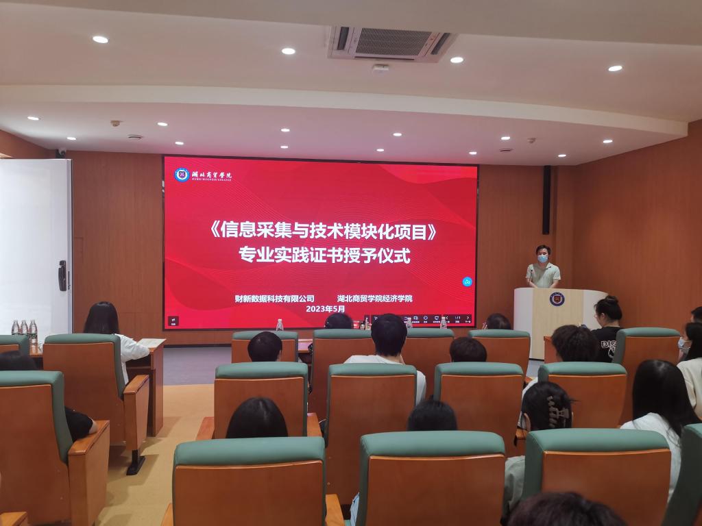 5月18日下午2点,公司与财新数据公司合作的《信息采集与技术模块化》专业实践项目证书授予活动在图书馆报告厅举行。财新数据科技有限公司数据生产中心总监赵春钢、数据采集部经理郭采灵,金融教研室相关教师参加,活动由经理助理袁艺老师主持。