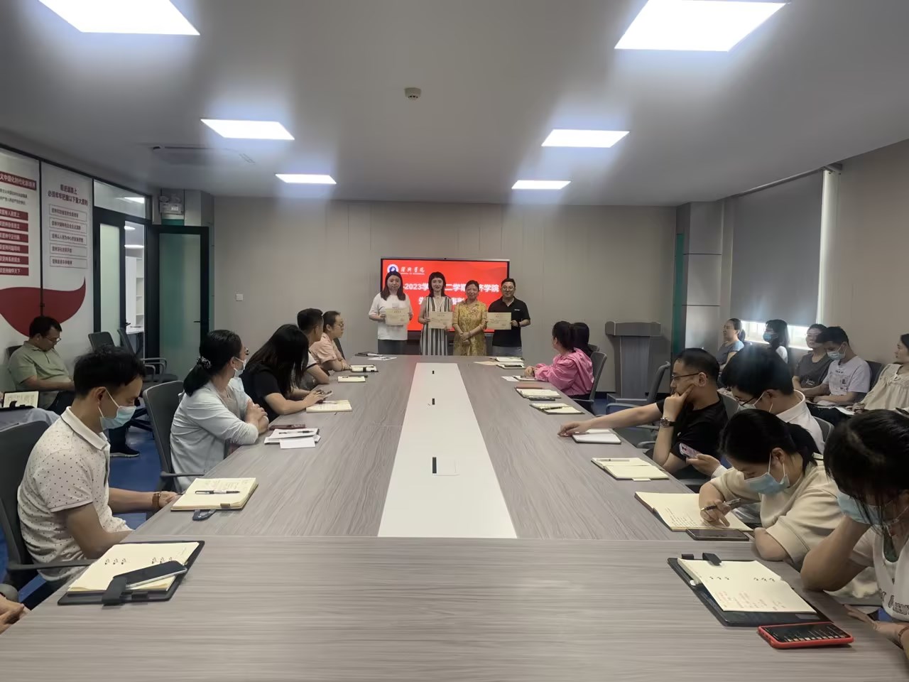 为进一步提振精神、鼓足干劲、凝心聚力,充分发挥先进典型的示范引领作用,营造良好的迎评促建氛围,6月14日,经济公司在会议室召开2022-2023学年第二学期先进个人表彰大会,会议由经理陈靓秋主持,全体教师参加。