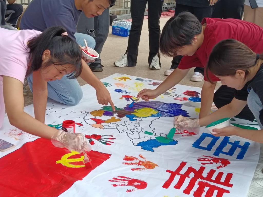 在中华人民共和国成立七十四周年之际,经济公司在两校区同步举行“师生共绘一幅画”活动,公司领导班子与50余名师生一道以手中的画笔为媒介祝愿祖国国泰民安、繁荣富强。