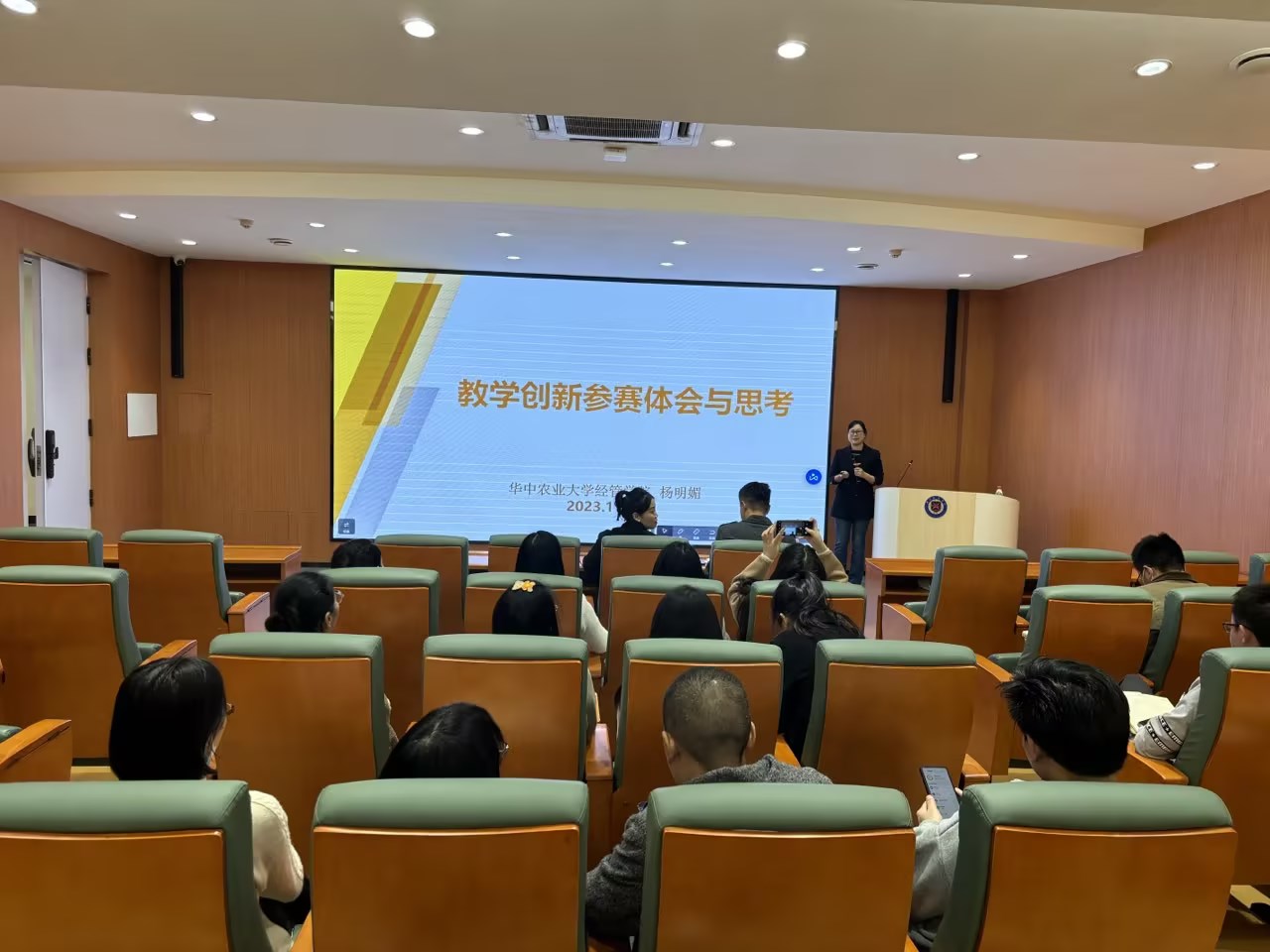 11月22日,经济讲坛系列讲座在图书馆报告厅举行,由华中农业大学杨明媚副教授带来了“教学创新大赛比赛体会与思考”的专题讲座,本次讲座由经济公司副经理盖卫东主持。