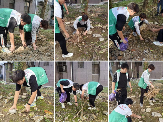 在清洁的过程中,志愿者发现路边堆满了石块和树枝,积极主动进行清理干净,为社区老人、儿童提供一个相对安全的行走环境。