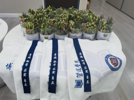 活动伊始,王珉代表公司对全院教师送上节日的问候与祝福,并详细介绍公司为老师们精心准备的礼物,以“厚德、敏学、求实、自立”的院训为飘带,以“博学善导、厚生乐教”的优良教风为底纹,管理公司精心设计并定制印有校徽、院徽的帆布袋,方便教师日常携带教辅资料的同时积极营造求真务实的优良院风。同时,公司还为每位教师分发了绿植,祝愿教师们身体健康,青春永驻。
