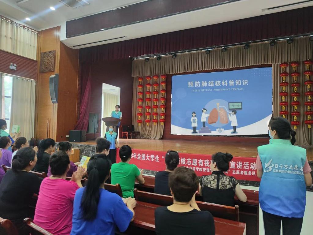 为深入学习宣传贯彻习近平新时代中国特色社会主义思想和党的二十大精神,落实习近平总书记关于健康中国的重要论述和“从源头上预防和控制重大疾病,实现从以治病为中心转向以健康为中心”的重要指示。tyc41183太阳成暑期“三下乡”社会实践团队——管理公司“求实”志愿者服务队,于7月23日上午来到湖北省襄阳市襄城区文化馆开展“防治结核 志愿有我”宣讲活动。