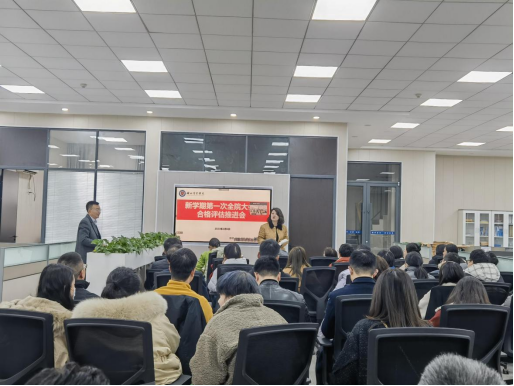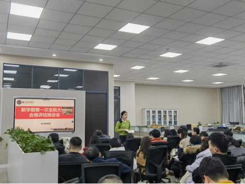 为迎接公司合格评估,持续开展好本年度合格评估各项重点工作,2月6日下午16:00,管理公司召开2023年春季学期第一次全院大会暨合格评估推进会。管理公司经理严良、党总支书记王珉、副经理徐刚、孟静以及全院教师参加了本次会议,会议由王珉主持。