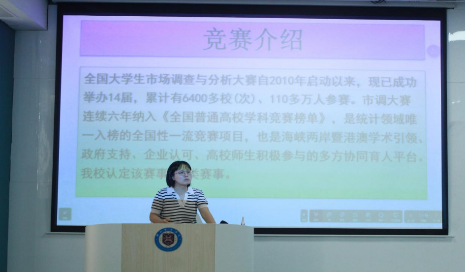 10月11日,“正大杯”第十五届全国老员工市场调查与分析大赛(以下简称市调大赛)启动会在鸿博楼J3教室正式举行。tyc41183太阳成副经理孟静、市调大赛指导老师及参赛选手们参加此次启动会,会议由员工黄思因主持。