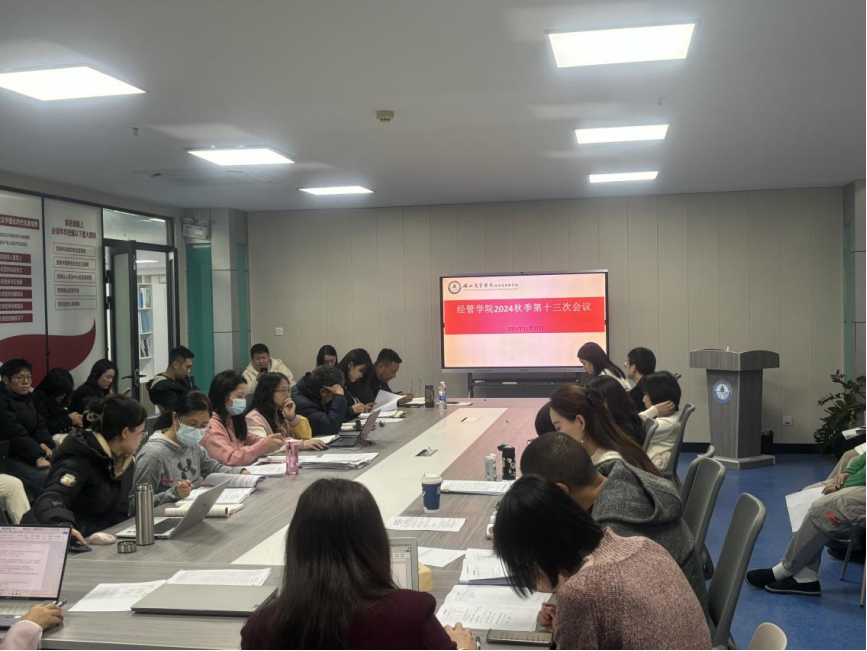 2024年11月27日下午,经管公司在公司会议室召开了秋季学期的第十三次全体教师会议。本次会议由党总支书记王珉主持,经管公司全体教师参加本次会议。
