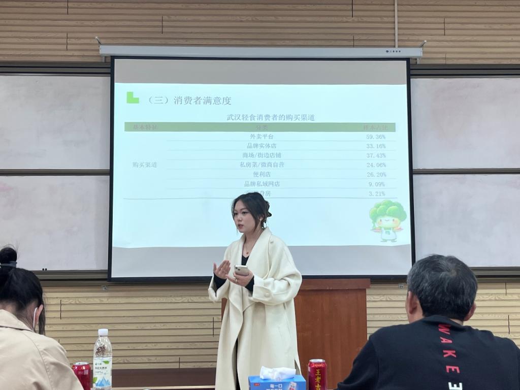 本次答辩由副经理徐刚、大数据与统计教研室教师程慧、曹洋和唐令超担任评委。本次市场调研分析比赛答辩紧扣时事热点,聚焦商业发展、短剧消费、健身消费、生活便利、低碳环保等重要领域。答辩现场,同学们借助PPT系统展示问卷设计、数据可视化等研究成果,并运用结构方程、SWOT分析、动态图表等工具,多维度阐释项目的社会价值与实践逻辑。答辩环节,评委老师们分别从选题创新性、方法科学性、结论严谨性等不同角度对项目进行考评。