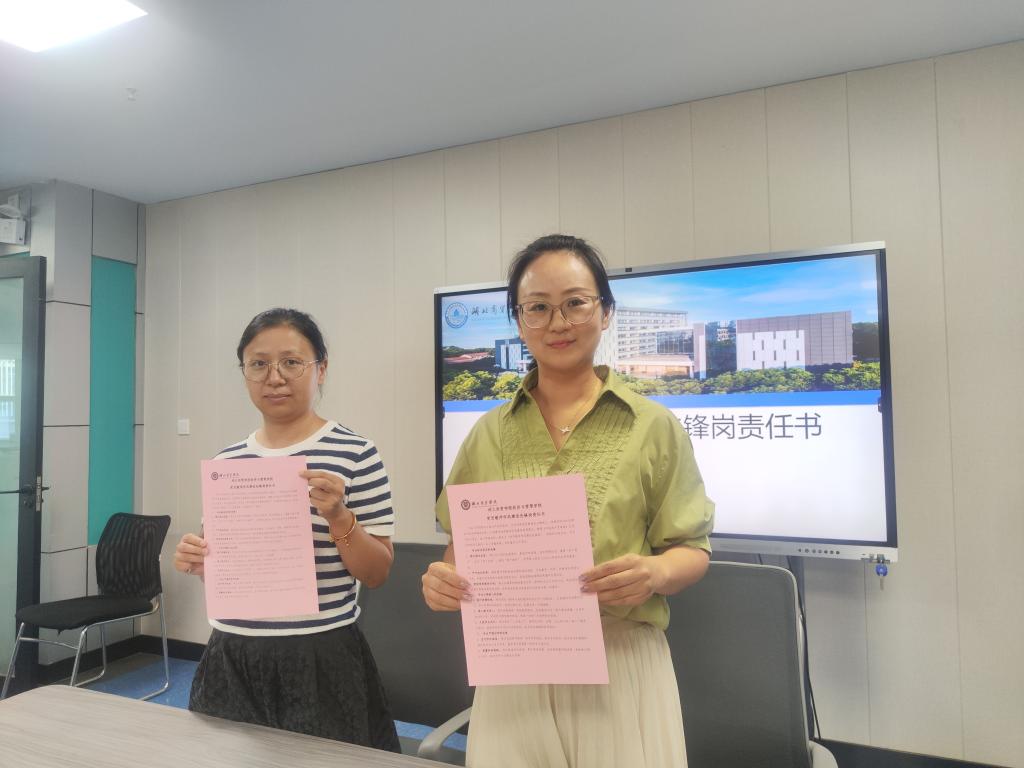 2. 先锋引领树标杆:郑洁与教工党支部书记、党员教师代表签订《党员教师作风建设先锋岗责任书》,提出"四个先锋"建设标准:做政治坚定的表率先锋、教书育人的业务先锋、服务师生的奉献先锋、清正廉洁的作风先锋,要求党员教师在公司产品改革、科研攻关等工作中主动担当"突击队"角色。