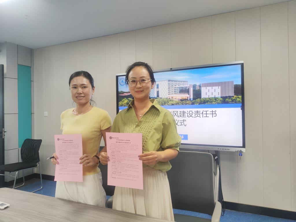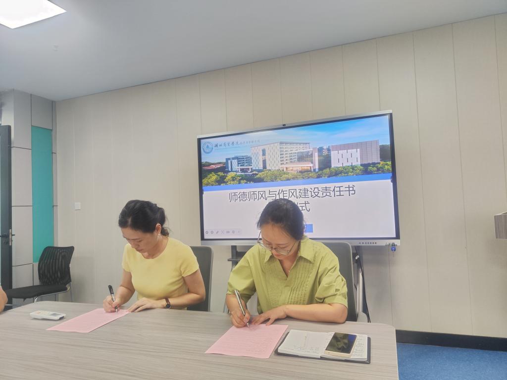 1. 全员覆盖强根基:郑洁与各教研室主任共同签署《教师师德师风与作风建设责任书》,从四个维度构建师德规范体系:坚定政治方向的思想底线、恪守教书育人的职业本分、严守学术诚信的科研红线、践行行为世范的师表准则,建立起"预防-监督-惩戒"的全链条管理机制。