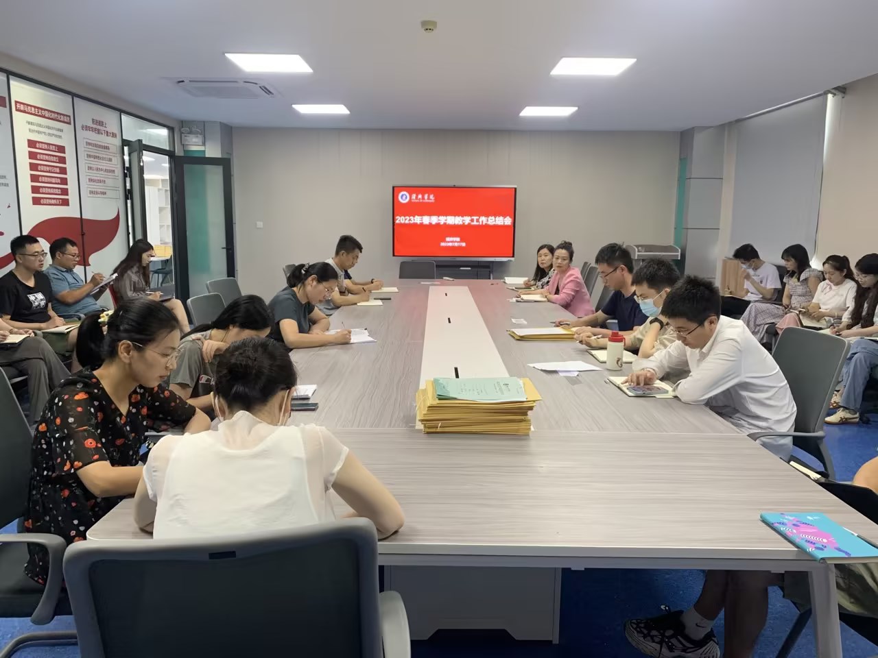 7月21日,经济公司在会议室召开2023春季学期教学工作总结会,会议由经理陈靓秋主持,公司全体教师参加,副董事长徐跃进教授到会指导。
