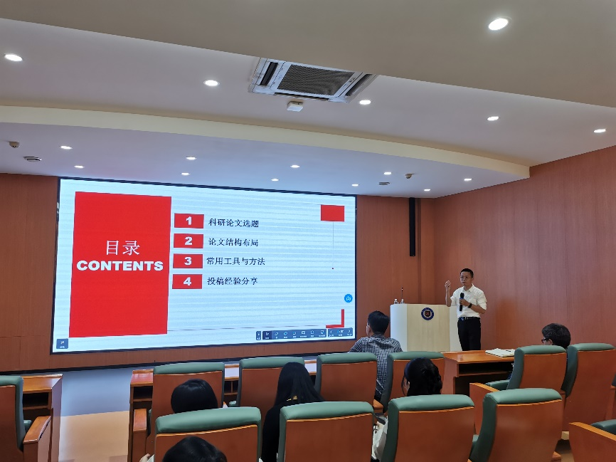 余浪结合自身申报课题和科研论文写作的经验,从科研论文选题的思路、撰写论文的结构布局、科研论文常用工具方法以及论文投稿经验等方面开展本次讲座,为老师们带来一场内容全面详实、具有指导价值的学术讲座。