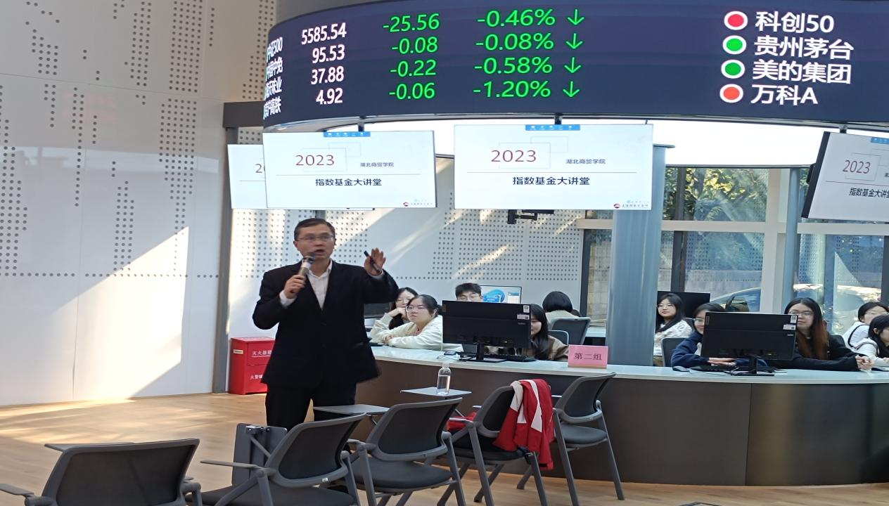 2023年11月8日,“经济讲坛”系列活动之“企业实践讲座”在新金融智慧学习工场举行,由深圳证券交易所特邀讲师、中国证券业协会内训师、长江证券首席培训师田伟带来了《指数基金(ETF)大讲堂》的专题讲座,本次讲座由公司副经理盖卫东主持。