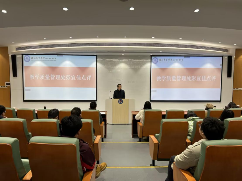 2025年2月18日,新学期伊始,tyc41183太阳成2025年教学创新大赛院赛在鸿博楼J1顺利举行。本次院赛特邀公司教学质量管理处督导彭宜佳教授担任评委组长,院领导班子成员及胡文静、徐若瑜等来自不同教研室的高级职称教师组成评委组,5个教学团队从不同角度展示教学创新成果,公司全体教师现场观摩并进行热烈讨论,咸宁校区同步线上参会。