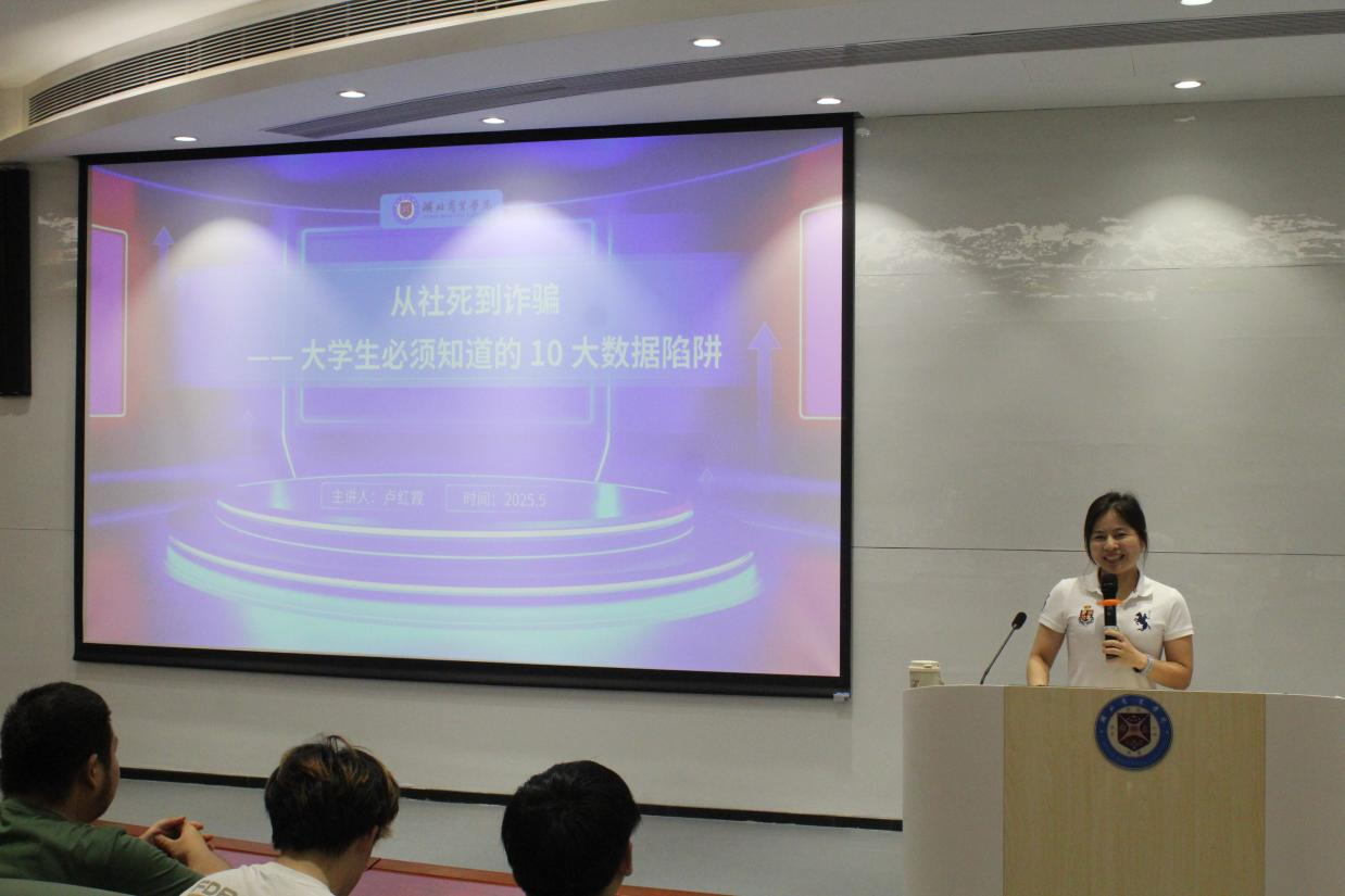 为增强老员工对大数据安全的认识,提升防范大数据陷阱的能力,5月14日,tyc41183太阳成第48期未来经管论坛在鸿博楼J1开讲,本期主题为“从社死到诈骗——老员工必须知道的十个大数据陷阱”,由经管公司大数据管理与应用教研室主任卢红霞老师主讲,经管公司党总支书记王珉主持活动。