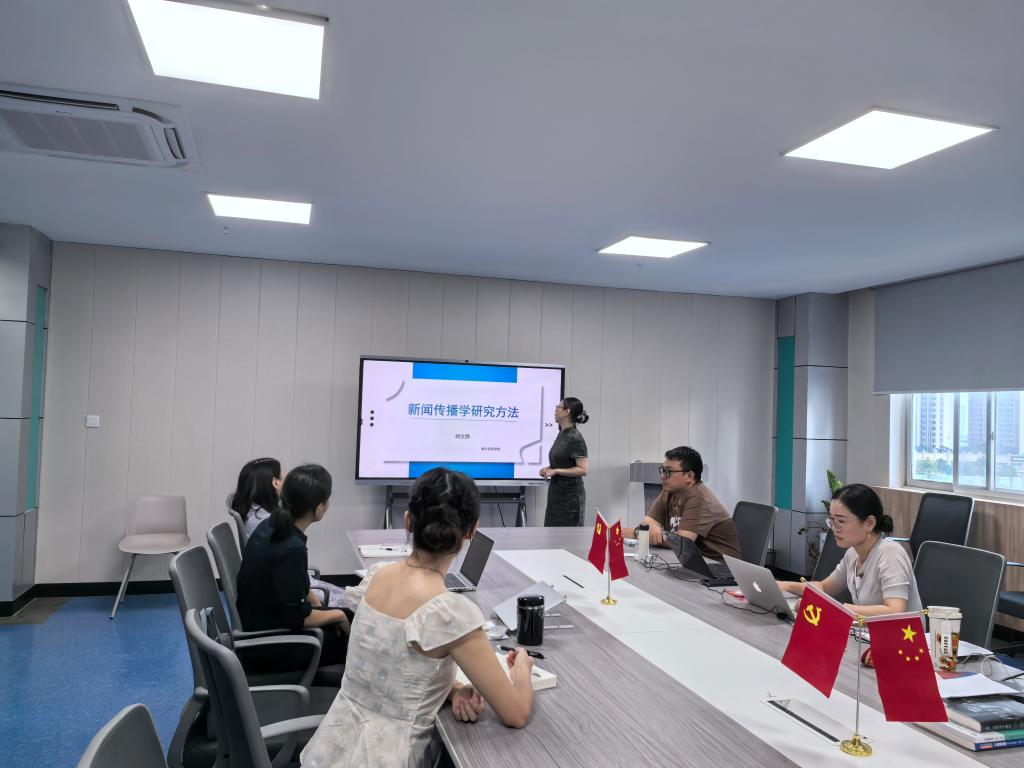 胡文静教授对本学期新开课《新闻传播学研究方法》进行示范授课。她将新闻传播学研究的几种常用方法嵌入互动小游戏中,激发员工对本课程产生浓厚的学习兴趣,并以说课形式阐述第一章传播学研究方法的发展历程,帮助员工理解科学的研究方法不是实验室里的抽象理论,而是在信息洪流中“锚定方向”的工具。