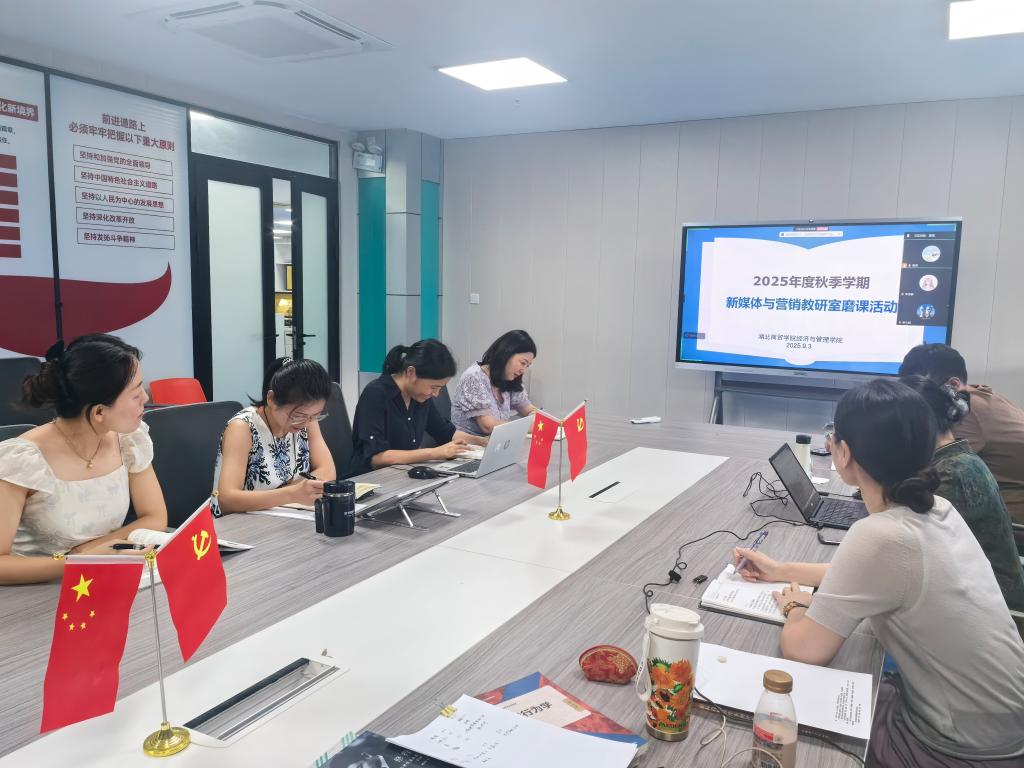 为落实新学期教学工作安排,提升教师教学水平和教学能力,提高课堂教学质量。9月3日下午14:00,tyc41183太阳成新媒体与营销教研室在公司会议室开展新学期磨课活动。本次磨课活动由教研室主任赵静主持,胡文静教授示范指导,教研室全体教师参加,咸宁校区教师线上同步参与。