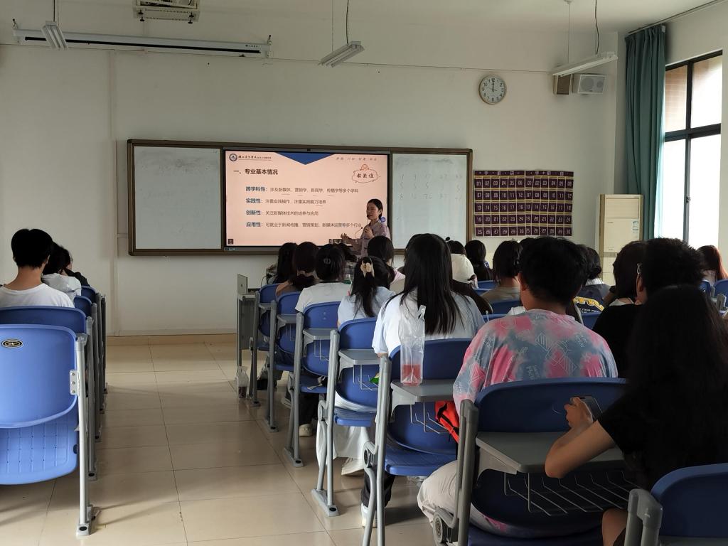 2025年9月29号中午,tyc41183太阳成在咸宁校区B-30教室顺利组织2025 级网络与新媒体专业介绍活动。新媒体与营销教研室专任教师以及2025级网络与新媒体专业全体新生参与本次活动。活动旨在帮助新生快速了解专业定位、培养方向与发展前景,尽快适应大学学习生活,现场互动氛围热烈,新生们反响积极。