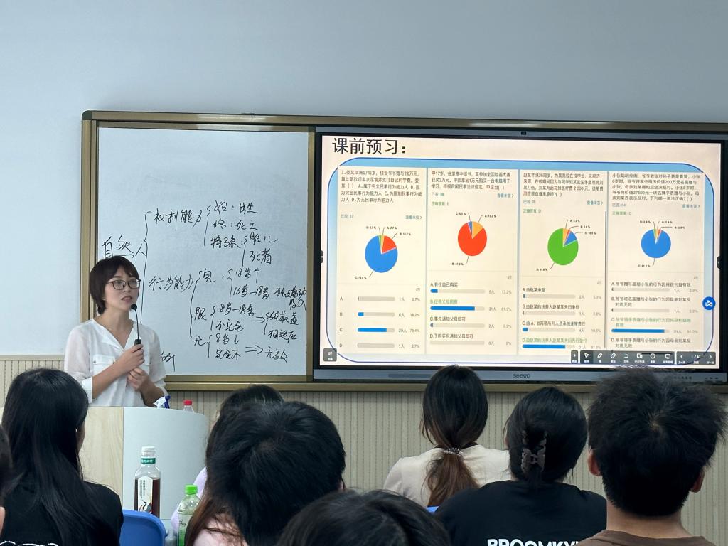 活动中,公司邓相花教授为22财管本1班讲授《民法》课程。邓教授的课堂教学注重理论与实践的结合,通过丰富的案例分析和互动讨论,使员工们能够更好地应用理论知识解决实际问题。她将复杂的民事主体理论以通俗易懂的语言呈现给员工们,引导员工深入理解民事主体的概念、分类和法律属性。课堂上,员工们积极参与讨论,与邓相花教授进行了一场思维碰撞和学术交流。在示范课后,邓相花教授还与新老师们分享了一些授课方法和心得体会。