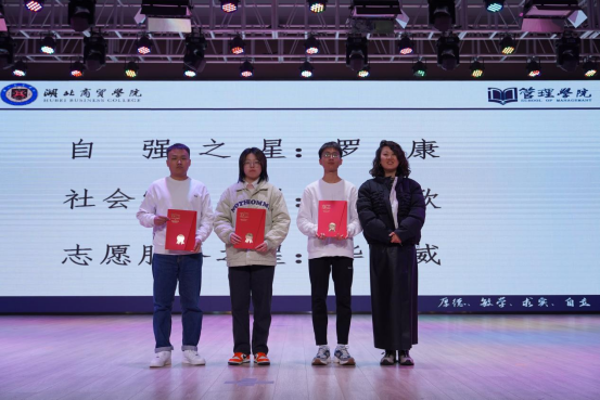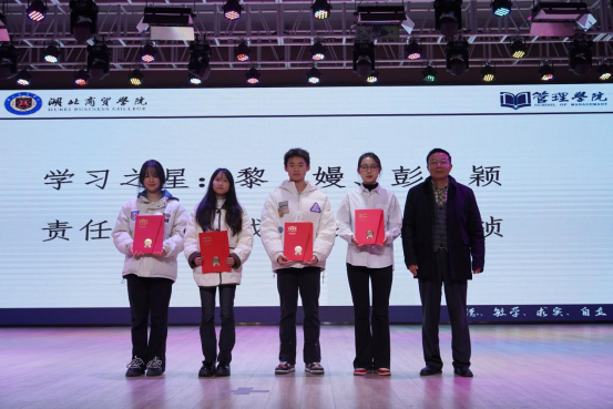 大会总结表彰了在2023学期中,努力奋进,奉献集体的先进个人、集体。其中管院十大之星“学习之星”黎嫚代表总结了在过去的学期中,她奋进向上,乐观学习的经历。鼓励在座学子肯于学习,乐于学习。