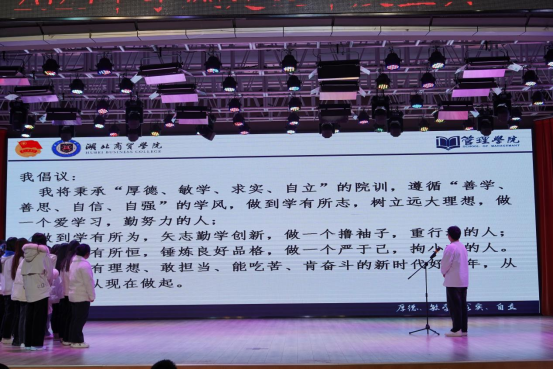 之后,优秀学风班级代表2022级电子商务本科一班宣读学风建设倡议书,倡议管理公司全体学子做到学有所为,做到学有所恒,立志做有理想、敢担当、能吃苦、肯奋斗的新时代好青年。