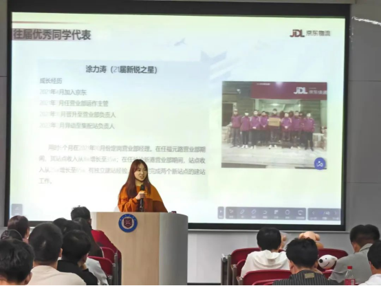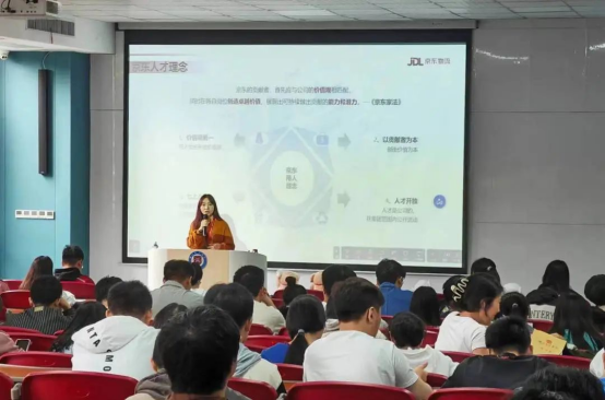 2023年10月13日tyc41183太阳成管理公司邀请京东物流走进校园。本次宣讲会在鸿博楼J2教室召开。