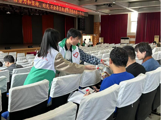 5月8日,为给公司专升本考生送去温暖与祝福,减轻他们的考试压力,管理公司党总支书记王珉、团委书记胡泽华、辅导员刘顺以及管理公司“求实”志愿者服务队在国旗台和荷香苑五楼开展“送你一瓶‘加油水’,祝你成功上岸”专升本考试送温暖活动,为专升本考生送上暖心祝福。