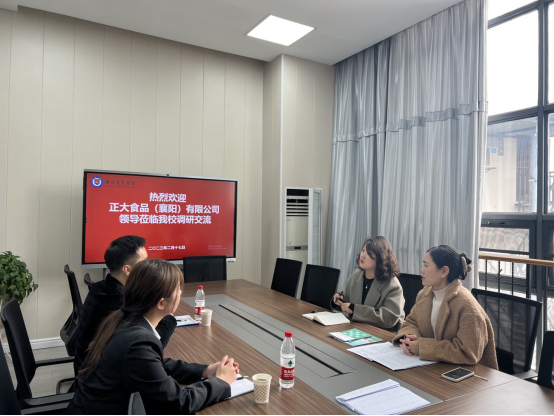 2023年4月14日,正大食品(襄阳)有限公司人力资源主管章斌一行来访管理公司,就校企合作、实习基地、合格评估、拓岗促就业等事宜进行洽谈交流。管理公司党总支书记王珉、副经理徐刚和教研室主任赵静结合公司员工实习实践与企业代表深入探讨。