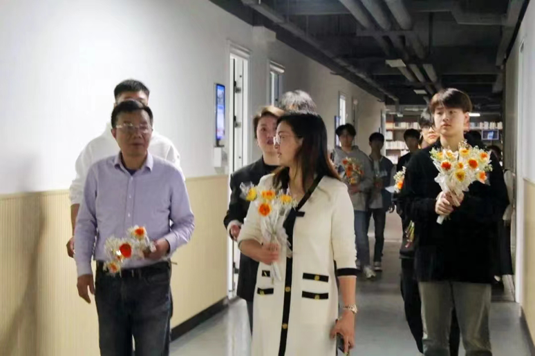 上午第一节课课间,副董事长胡柳教授、管理公司经理严良教授、管理公司党总支书记王珉及公司全体辅导员前往教室和寝室将一朵朵芬芳的鲜花送到女生们的手中,并送上诚挚温馨的节日祝福,许多同学都表示十分惊喜与温暖,也特别感谢公司举办的此次活动,让大家深深感受到管理公司的关怀。