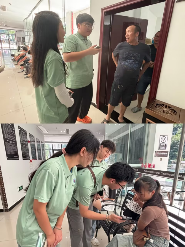 在当地居民以及工作人员的引领下,实践团不仅领略了灵巫洞内鬼斧神工的钟乳石景观,还参与了“洞穴探险”活动,了解洞穴的形成原理及生态保护的重要性。实践团还组织了“科普小讲堂”,向游客普及文物保护、文化传承知识,增强了公众对自然遗产保护的意识。